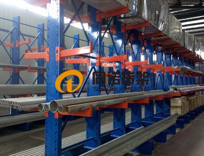 懸臂貨架: 適用于長型、板材或環(huán)形物料的儲(chǔ)存。前伸的懸臂具有結(jié)構(gòu)穩(wěn)定,載重能力好,管理方便、視野寬闊。根據(jù)載重不同,可分為輕型、中型、重型;根據(jù)儲(chǔ)存面可分單面、雙面懸臂。