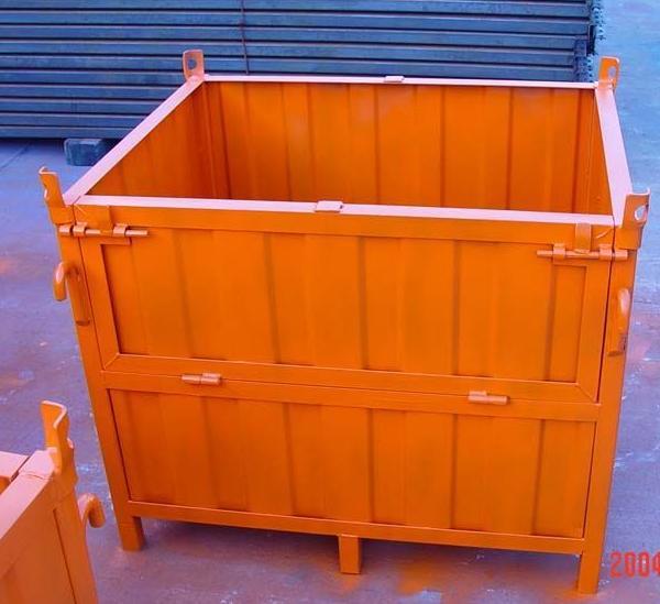 鋼制料箱,金屬料箱,鐵料箱是在金屬平板鋼托盤基礎(chǔ)上發(fā)展起來的,用于解決鋼托盤無法承放散件或散狀物料弊端。一般下部像鋼托盤一樣方便叉車四向進(jìn)叉,上部可吊裝,也可進(jìn)行堆垛,在存儲(chǔ)貨物時(shí),可堆垛四層,可實(shí)現(xiàn)倉儲(chǔ)的立體化。根據(jù)結(jié)構(gòu)一般可分為固定式料箱、折疊式料箱,根據(jù)板材可分為箱式料箱、格式料箱、網(wǎng)式料箱三種形式。